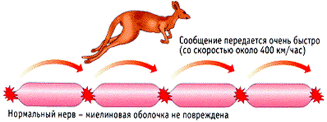 Рис. 5. Скорость передачи нервного импульса и миелинизация оболочки нейрона.