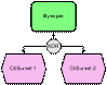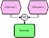 | Оператор «Исключающее ИЛИ» используется для обозначения слияния/ветвления функций и для слияния событий. По правилам нотации EPC после одиночного события не может следовать разветвляющий оператор «Исключающее ИЛИ». Функция инициирует либо только Событие 1, либо только Событие 2. Событие может произойти либо сразу после завершения выполнения Функции 1, либо сразу после завершения выполнения Функции 2. Функция может начать выполняться сразу после того, как произойдет либо Событие 1, либо Событие 2 |