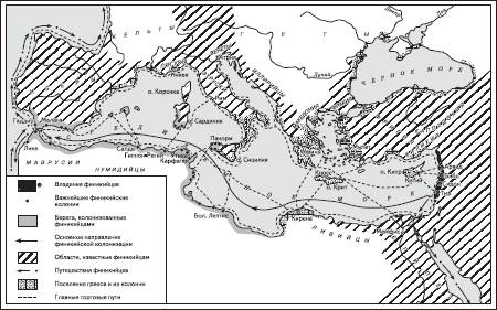 Самым крупным городом, который создали puni (так римляне называли финикийцев), был Карфаген, основанный в конце IX в. до н. э. выходцами из г. Тира. По-финикийски его название звучит как Карт-хадашт и означает буквально «новый город» (в отличие от метрополии – Тира), по-нашему – Новгород. К III в. до н. э. Карфаген объединил вокруг себя большинство финикийских колоний, стремясь к полной гегемонии над западной частью Средиземноморья. Здесь он столкнулся с Римской республикой: более 100 лет велись кровопролитные Пунические войны, закончившиеся разгромом и полным уничтожением Карфагена. Для римлян борьба была смертельно опасна, но победа над Карфагеном стала прологом создания великой средиземноморской державы – Римской империи.
