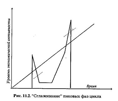 В результате проводимой политики кривая цикла выпрямляется, что позволяет избежать негативных последствий кризисов.