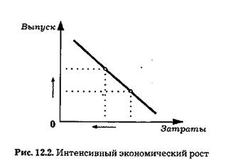 В отличие от затратного, при экстенсивном росте, является антизатратным, формирующим антизатратную траекторию экономического роста, (см. рис. 12.2).