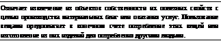 | Отчуждение | >- | Это процесс расходования собственности, передачи ее другому юридическому или физическому лицу, перераспределения между классами, социальными группами или даже ее физического уничтожения. Основными формами отчуждения собственности выступают: расходование, перераспределения и ликвидация собственности (авария на Чернобыльской АЭС и т.п.). |