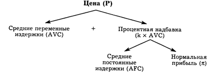 Наибольший удельный вес имеют, как правило, переменные издержки. К их средней величине прибавляется определенный процент, который включает средние постоянные издержки и нормальную прибыль (рис. 9.11).