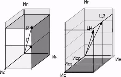 ций), — все значения информации (И. о потребностях; И. о необходимых средствах; И. о существующих средствах) можно признать векторными величинами Ип; Ин; Ис. Причем вектор О-Ц1,2,3,4 (рис. 3.10) может условно характеризовать: качество и знак эмоций; величину эмоциональной реакции; направление мотиваций, общее направление активности, движения, стремления, влечения для выбора цели и конкретных действий.