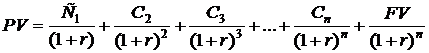 C1, C2, C3, Cn — купонный доход начисленный в конце каждого периода;