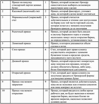 1. Найдите в правой колонке определение терминов, указанных в левой колонке.