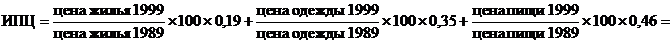 Предположим, что доля жилья в корзине составляет 0,19, доля одежды – 0,35, доля пищи – 0,46. тогда индекс определяется: