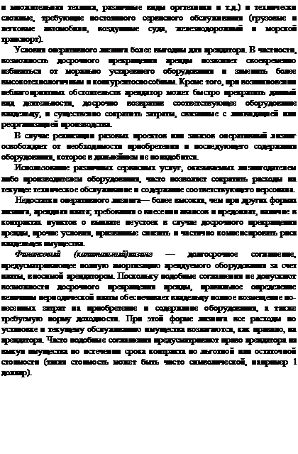 лизинга — дорогостоящие активы, такие, как месторождения полезных ископаемых, оборудование для добывающих отраслей и т.д.