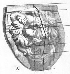 В-третьих, в рельефе маски льва нет четких краев, поэтому закономерность горизонтальных линий, стремящихся к точке схода, определяется по направлению глаз. Все остальные линии и соответственно детали рельефа строятся в зависимости от нее.