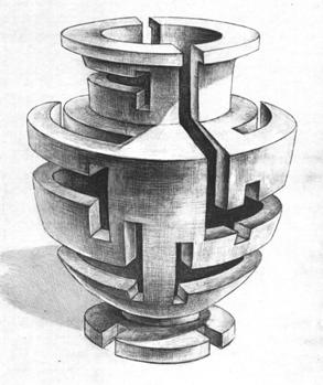 Цель рисунка – научиться строить целостную форму относительно плоского орнамента в пропорциональных, перспективно-пространственных и светотеневых взаимосвязях и выявить ритмическое начало.