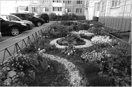 Жители бросали в подъездах мусор и пакеты с отходами, выворачивали лампочки на лестничных площадках, рисовали на стенах и в лифте. Это было тем более странно, что почти все купили квартиры за свои деньги, а не приватизировали.Сегодня в доме — чистота и порядок. У дома — цветы, которые сажают его жители. Наверное, сажают с любовью, потому что подснежники зацветают еще в марте, а розы цветут до декабря (рис. 32).