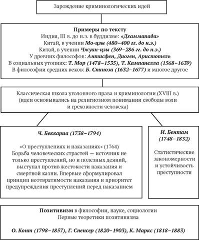 Для наглядности изобразим основные этапы развития зарубежной криминологии в виде схемы (4.2).