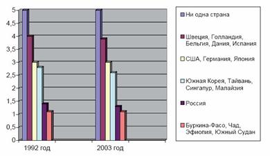 Принятый за основу коэффициент жизнеспособности измеряется по пятибалльной шкале. Первые исследования ЮНЕСКО и ВОЗ, проведенные в 1992–1993 гг., дали следующие результаты: ни одна страна в мире не получила 5 баллов. Требованиям уровня 4 баллов соответствуют такие страны, как Бельгия, Голландия, Дания, Испания и Швеция. Три балла получили США, Германия, Япония. Не выше трех баллов имеют индустриально развитые страны и соответствующие им по коэффициенту новые индустриальные страны – Южная Корея, Тайвань, Сингапур, Малайзия и др.