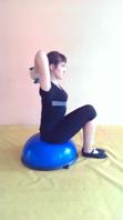 – сидя на BOSU, руки согнуты за голову, в руках гантели.1-2 – выпрямит руки;