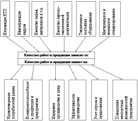 Рисунок 1.1- Взаимосвязь качества работ и продукции с производственными показателями и результатами хозяйственной деятельности предприятия
