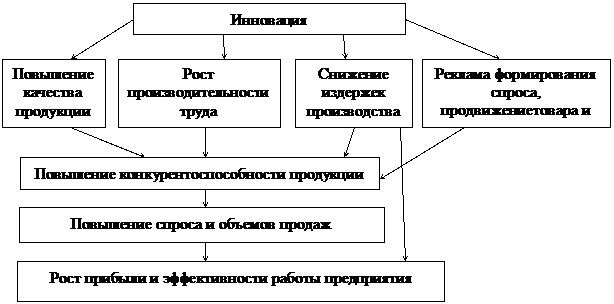 Рисунок 1.2 - Влияние инновации на качество, конкурентоспособность и эффективность производства