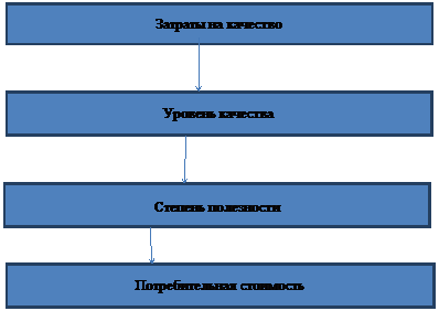Вышесказанное определяет взаимосвязь понятий «качества», «полезность», «потребительная стоимость». При этом качества выражает не просто полезность объекта, а степень его полезности. То есть получается цепочка (рис. 6.1), в которой затраты на качество определяет его уровень, а уровень качества определяет степень полезности объекта, непосредственно реализованной в потребительной стоимости.