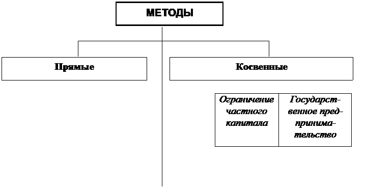 Прямые методы основаны на административных мерах государства (системе мер запретов, разрешений и способов принуждения), а также прямом участии государства в производстве (государственное предпринимательство).
