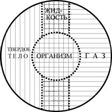 Рис. 3. Поясняющая нагляднологическая схема “АГРЕГАТНЫЕ СОСТОЯНИЯ ВЕЩЕСТВА И ЖИВОЙ ОРГАНИЗМ, ИХ СООТНОШЕНИЕ".