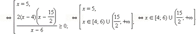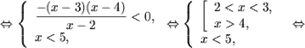 ![]() | x < 2, | Û | ![]() | x < 2, | Û x Î (1;2)È(5;6) | ||