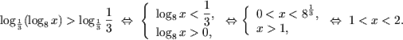 Основание логарифма число между нулем и единицей, поэтому, используя утверждение 2, получим: