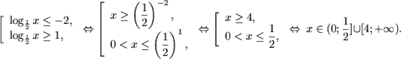 откуда, учитывая ОДЗ, получим множество решений исходного неравенства: