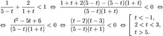 откуда t < -2 или t > 5.