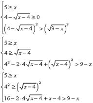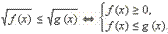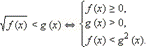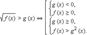 Если x лежит в ОДЗ: f (x) ≥ 0, то левая часть неравенства существует и неотрицательна. Поскольку для всех x, являющихся решением данного неравенства, правая часть больше левой, то g (x) > 0. Следовательно, обе части неравенства неотрицательны (для тех x, которые являются решениями неравенства, другие x нас не интересуют). Значит, возведение в квадрат не нарушает равносильности и можно записать равносильную нашему неравенству систему неравенств: