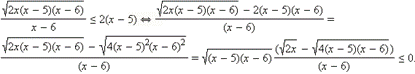 обращается в ноль, но x = 6 не входит в ОДЗ неравенства. Воспользуемся теперь тем, что знак разности корней совпадает со знаком разности подкоренных выражений. Имеем:
