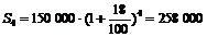 Решение. S0 = 150000 рублей, р = 18, n = 4.