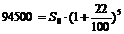 Задача 15. Какую сумму положили в банк под 22% годовых, если через 5 лет вклад достиг величины S5 = 94500 рублей?