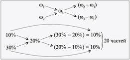 Задача 22. Определите, сколько нужно взять растворов соли 60%-й и 10%-й концентраций для приготовления 300 г раствора 25%-й концентрации.