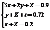 Отсюда получается первое уравнение 3x + 2y + z = 0,9