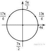 Значит, или Или б) С помощью числовой окружности отберем корни, принадлежащие отрезку Получим числа: | ![]() |