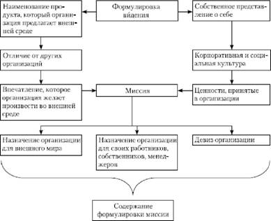 Разработка миссии организации опирается на историю фирмы, на среду ее обитания, на имеющиеся ресурсы, на способ действия собственников и управленческого персонала, на отличительные особенности организации.