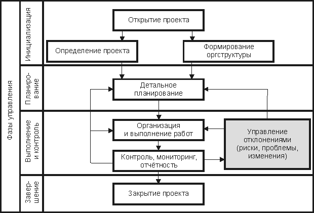 Однако подлинно самостоятельной дисциплиной проектный менеджмент стал благодаря знаниям, полученным в результате изучения общих закономерностей, присущих проектам во всех областях деятельности, а также благодаря методам и средствам, успешно используемым для самых различных проектов.Управление проектом достигается путем итеративного применения процессов управления. Наибольшее внимание обычно уделяется процессам управления проектами в следующих функциональных областях.