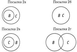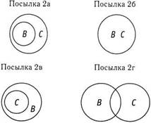 Рис. 4.4. Круговые диаграммы, правильно отражающие взаимосвязи между посылками в силлогизмах