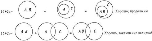 Примечание. Иногда существует несколько способов сочетания диаграмм посылок 1 и 2. Обязательно проверьте все возможные варианты.