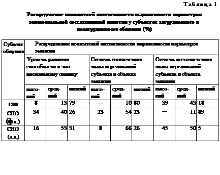 Частотный анализ показателей степени соответствия —несоответствия знака переживаний субъекта и объекта эмпатии показал, что субъектам затрудненного общения свойственны низкая степень соответствия знака переживаний субъекта и объекта