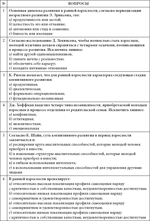 1. В чем заключаются основные задачи развития в ранней взрослости?