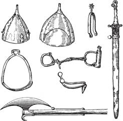 Вооружение воинов Киевской Руси (шлемы, шпоры, меч, секира, стремя, конские путы)