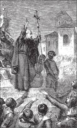 В следующую ночь сам Господь Иисус Христос явился одному известному священнику по имени Стефан, оплакивавшему смерть свою и своих товарищей, которая казалась ему близкой и неизбежной; он был напуган людьми, рассказывавшими, что они видели, как турки спускались с горы в город, победив наших и обратив их в бегство. Вследствие того священник, желая умереть перед лицом Бога, вошел в церковь блаженной Марии Приснодевы, исповедался, получил отпущение и начал петь псалмы вместе со своими товарищами. Другие уснули, а он один бодрствовал, и когда он произнес: «Господи, кто населит твои кущи, или кто опочит на твоей святой горе» (Псал. VI, 1), какой-то человек, красоты, превосходящей всякую другую красоту, явился перед ним и сказал: «Послушай, какой это народ вступил в город?» И священник отвечал: «Христиане». «Какие христиане?» - продолжал тот. На это священник говорил: «Люди, верующие во Христа, рожденного Девой, который пострадал на кресте, умер, был погребен, воскрес в третий день и вознесся на небо». Тогда неизвестный спросил: «Если они христиане, то почему же они боятся этого множества язычников? - и присоединил к тому:- Узнаешь ли меня?» Священник отвечал: «Я не знаю тебя, но вижу, что ты красивее всех». Тогда неизвестный промолвил: «Посмотри на меня пристально». Священник, взглянув на него со всем вниманием, заметил, что над его головой поднялся крест, превосходящий блеском само солнце, и потому отвечал ему: «Мы называем изображениями Господа нашего Иисуса Христа те образа, которые походят на тебя». На это тот сказал: «Ты прав: это - я. Не о мне ли сказано, что я всемогущий Господь, Господь сильный в брани? А кто начальник вашей армии?» Священник отвечал: «Господи, мы никогда не имели одного начальника, но больше доверяем епископу». И Господь сказал: «Скажи епископу: этот народ своим дурным поведением удалил Меня от себя, и потому объяви ему: вот что говорит Господь: обратитесь ко Мне, и Я возвращусь к вам. И когда они вступят в бой, то пусть говорят: наши враги собрались и кичатся в своем могуществе; истреби и рассей их силы, Господи, ибо ничто не защитит нас, кроме Тебя, о Боже