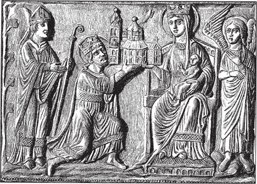 Карл Великий преподносит Деве Марии Ахенский собор