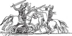 Схватка рыцарей в XII в. По миниатюре из рукописи «Саксонское зерцало». Гейдельберг