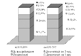 Для построения графической иллюстрации используется гистограмма, нормированная на 100%, обязательным является правильность построения расчётной таблицы, указания диапазона для графика, всех необходимых атрибутов таблицы.