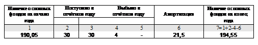 Баланс движения основных фондов фирмы за прошедший год (тыс.руб.)