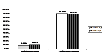 3. Построить графические изображения коэффициентов годности и износа на начало и конец года;