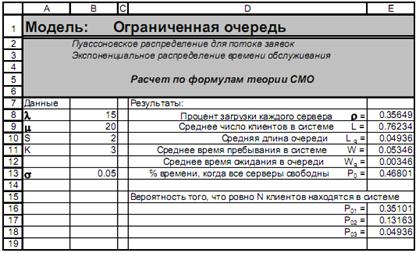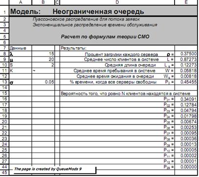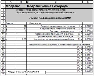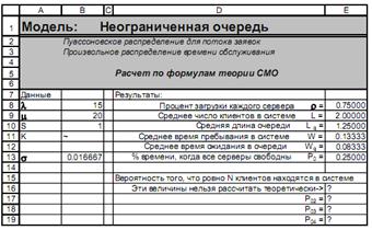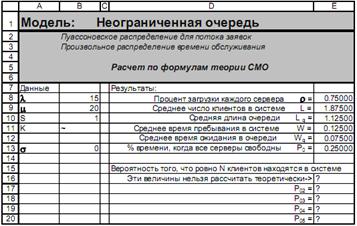 Решение. Формулы для расчетов характеристик систем массового обслуживания в основном довольно громоздкие и, что хуже всего, их часто даже в Excel невозможно использовать, введя один раз, для расчета систем массового обслуживания просто меняя параметры λ, μ и проч.