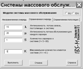 Вызываем надстройку «Расчет параметров СМО», появляется следующее диалоговое окно (рис. 5.1):