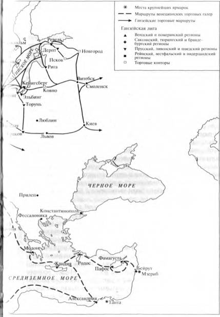 Карта 5.1. Торговые маршруты эпохи Позднего Средневековья